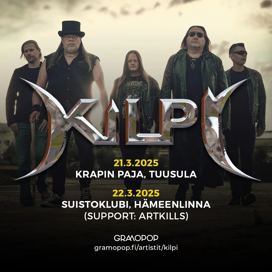 Pitkän odotuksen jälkeen keikkalavoille syksyllä 2024 noussut turkulainen heavy metal -yhtye Kilpi aloittaa vuoden 2025 keikat maaliskuussa. Tulevana kesänä mm. Rockfest ja John Smith Rock -festivaaleilla nähtävä yhtye esiintyy perjantaina 21.3.2025 Krapin Pajalla Tuusulassa, sekä lauantaina 22.3.2025 legendaarisella Suistoklubilla Hämeenlinnassa.